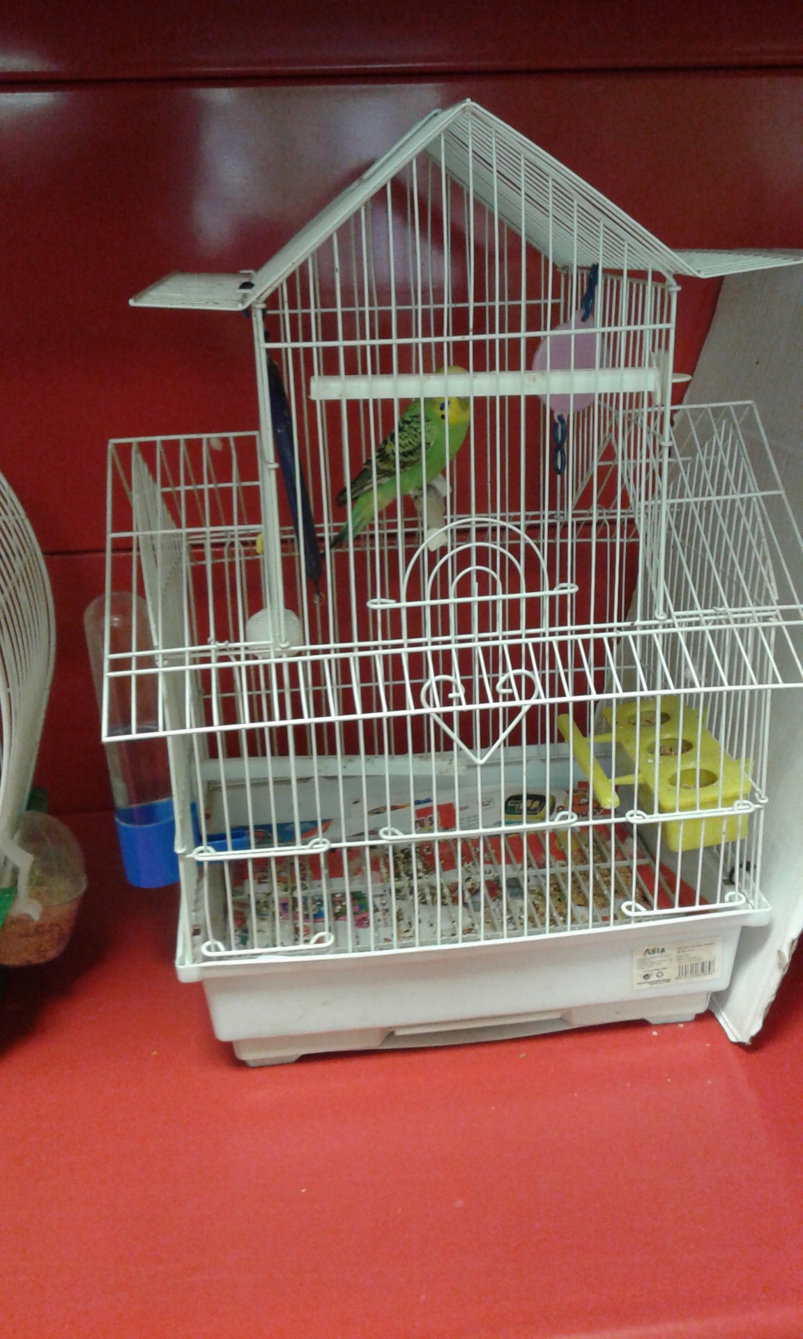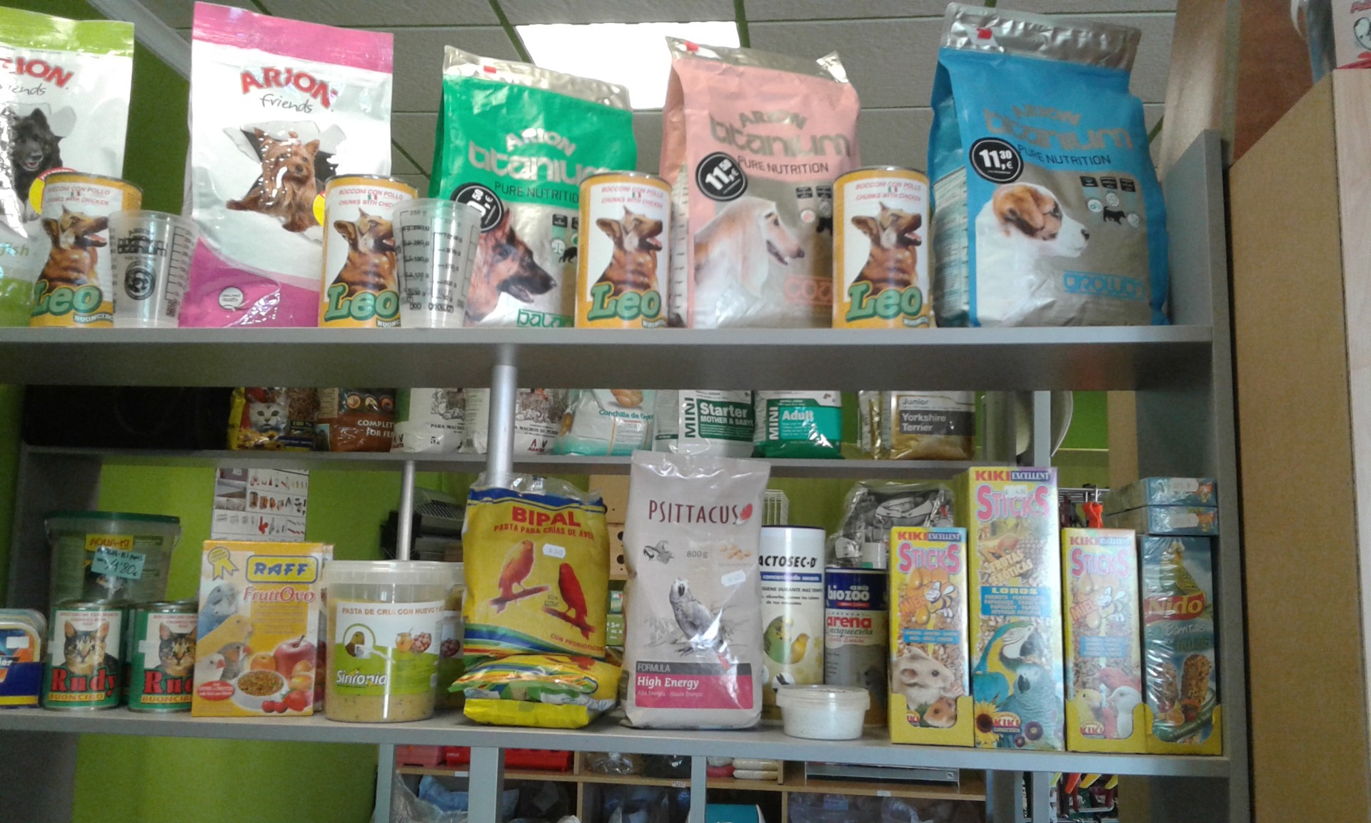 Pericos de diferents colors, Canaris, Tortugues d'aigua, Peixos, Agapornis, Conills. Cobayas, Hamsters, Gallines, Pollastres.